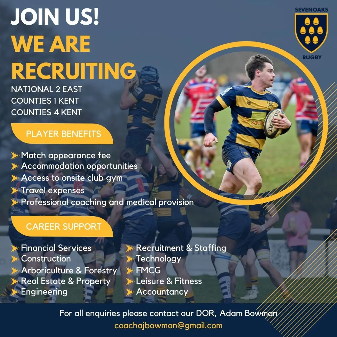Sevenoaks Rugby Club is recruiting players of all levels. Whether you’ve played semi-professional rugby, aim to compete in National League Rugby, or seek high-quality rugby in regional & county leagues, we have a place for you.